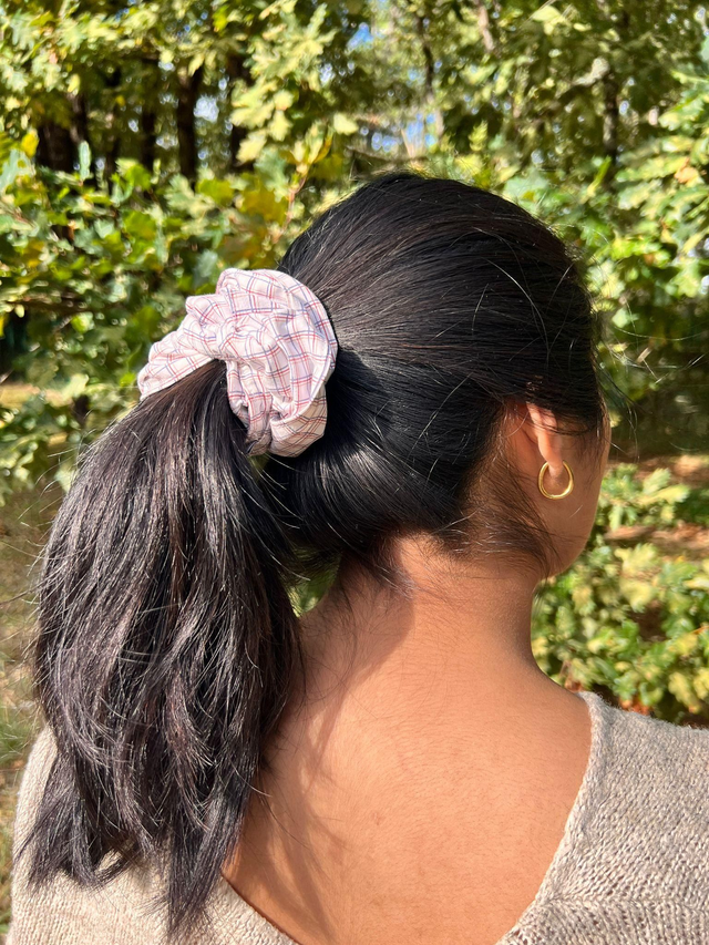 Découvrez nos scrunchies uniques, confectionnés à la main dans notre atelier parisien à partir de tissus 100 % coton récupérés de naps, draps et chutes de tissus vintages.