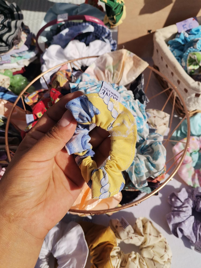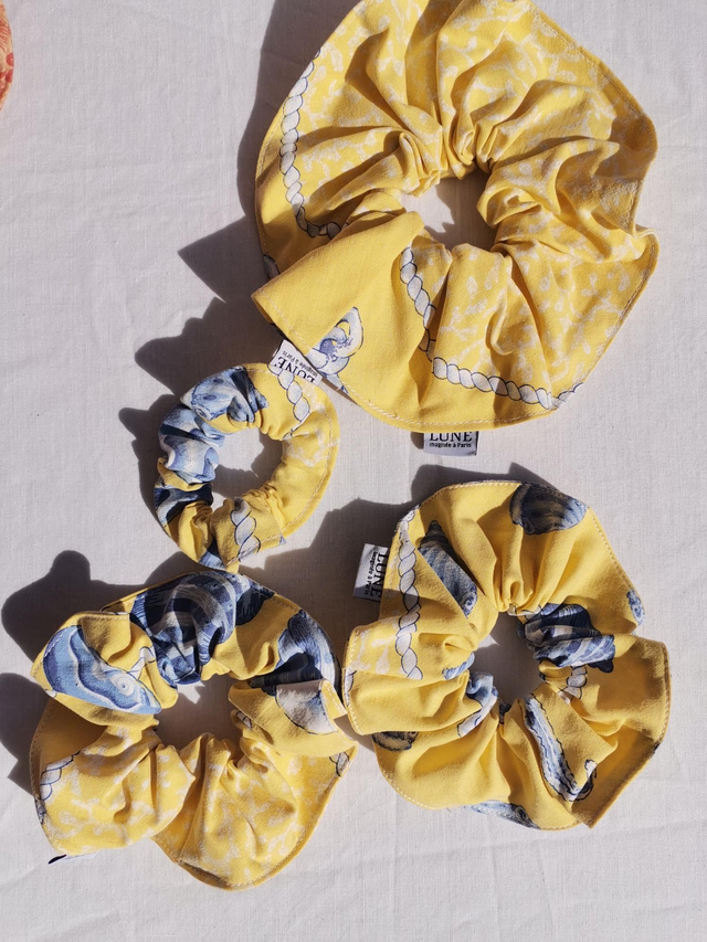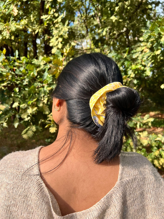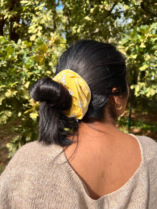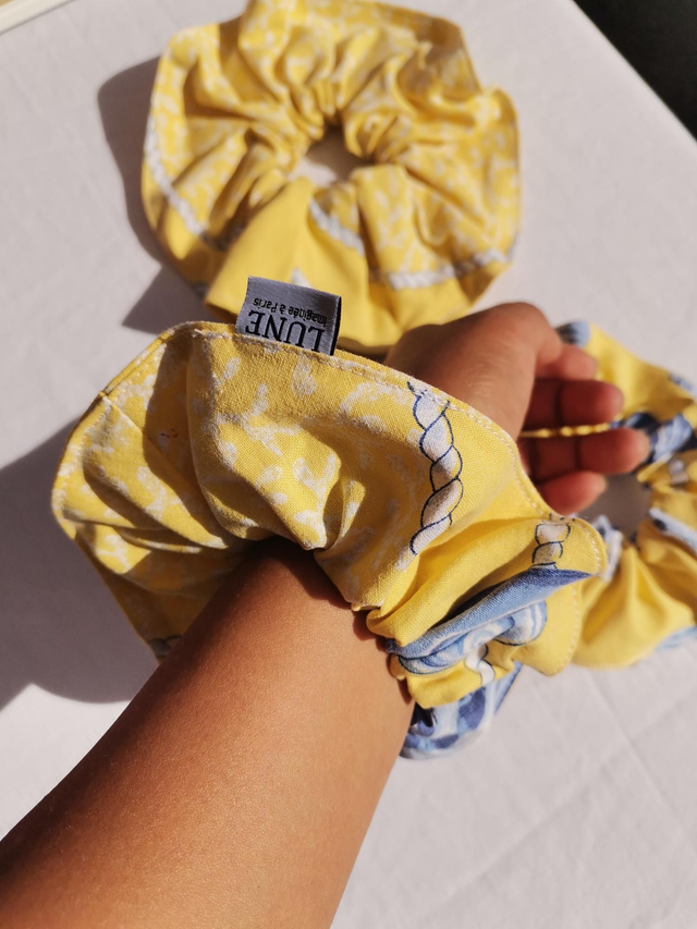 Découvrez nos scrunchies uniques, confectionnés à la main dans notre atelier parisien à partir de tissus 100 % cotton récupérés de draps, naps et chutes des tissus vintage.