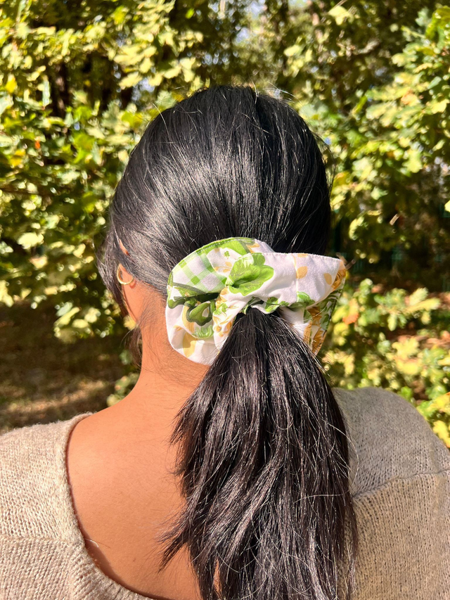 Découvrez nos scrunchies uniques, confectionnés à la main dans notre atelier parisien à partir de tissus 100 % cotton récupérés de draps, naps et chutes des tissus vintage.